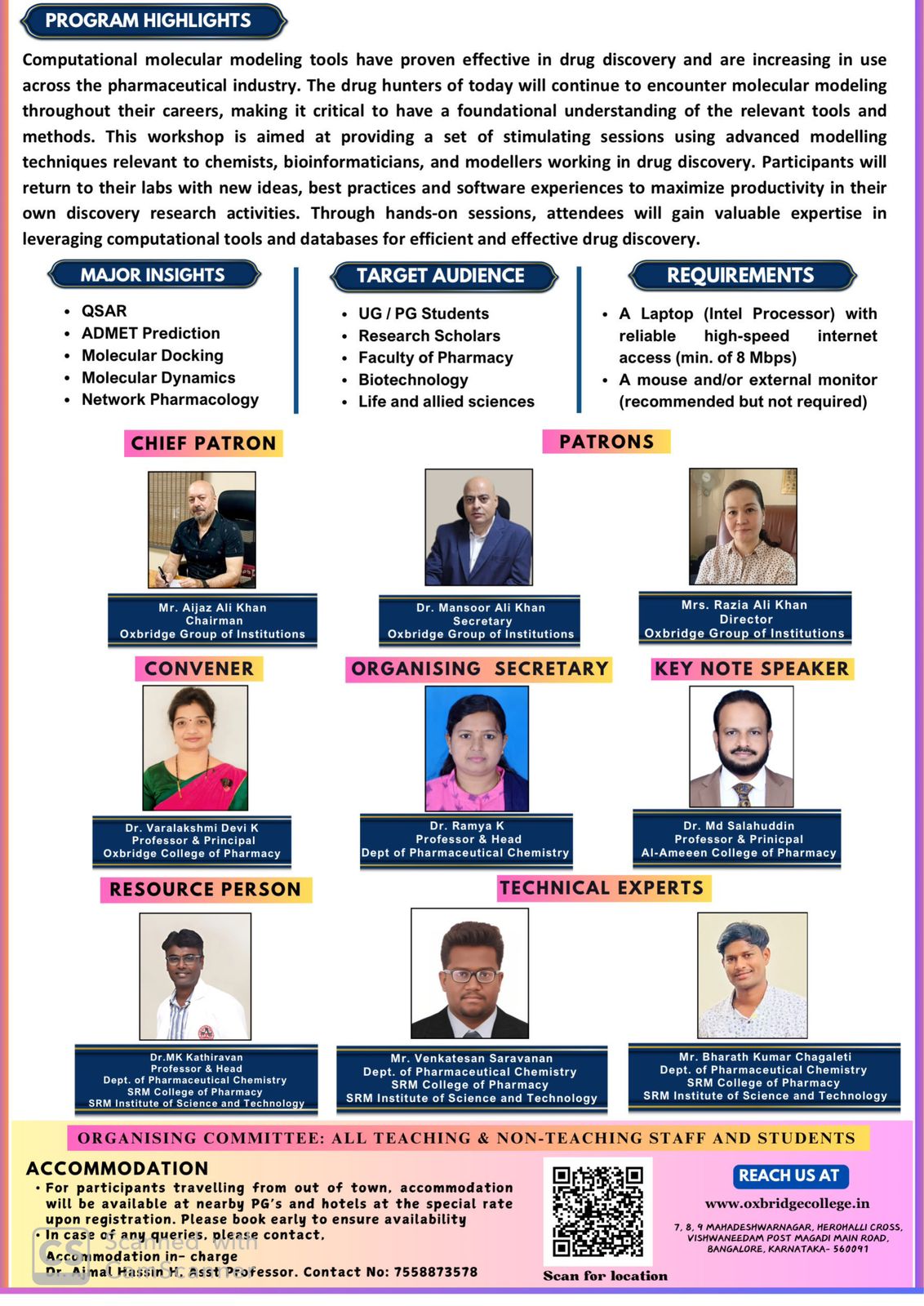 The rapid changes we see in almost each and every sector makes the task of educators even more challenging. It was over three decades now that the SKM Educational Trust was formed, with the mission to provide substance to college degrees by way of wholistic learning. Recent events and rapid changes brought about by globalization made us to re-look into how best education could be maximized, to meet the demands of globalization. The Oxbridge College of Pharmacy, Oxbridge Business School, Oxbridge College of Science and Commerce and SKM PU College,all run under the umbrella of the Oxbridge Group of Institutions, managed by the SKM Educational Trust. The Oxbridge is a dynamic community. It is multiracial, multi-cultural, multi-lingual Read More