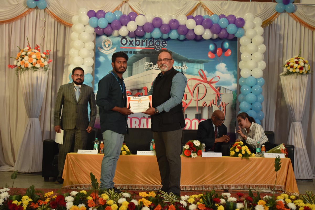 Oxbridge B.School Ranking (2012) Ranked 9th for Placement. Ranked 9th for Infrastructure. Ranked 10th Best B School In South India.